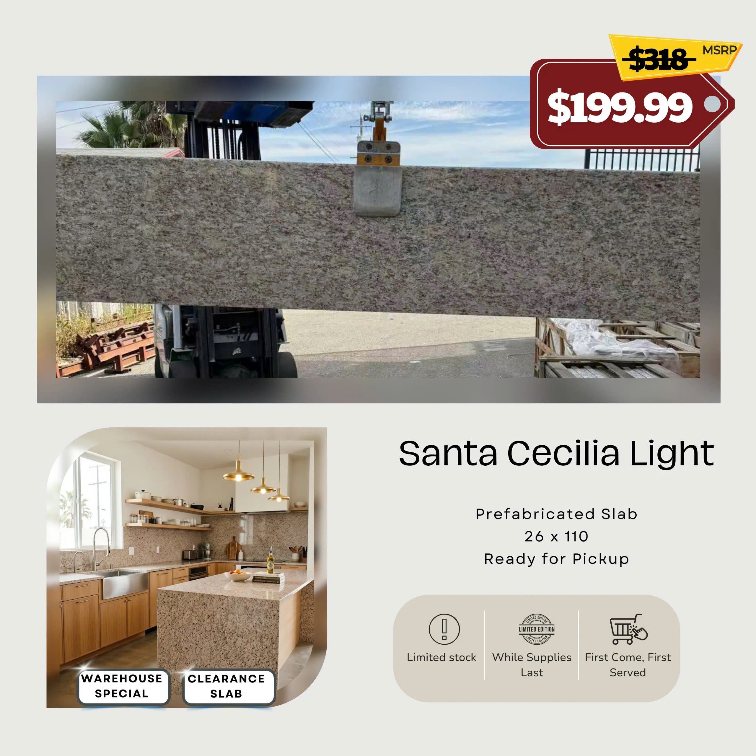 Originally priced at $599, this slab is now available for only $299 as part of a limited warehouse clearance event.