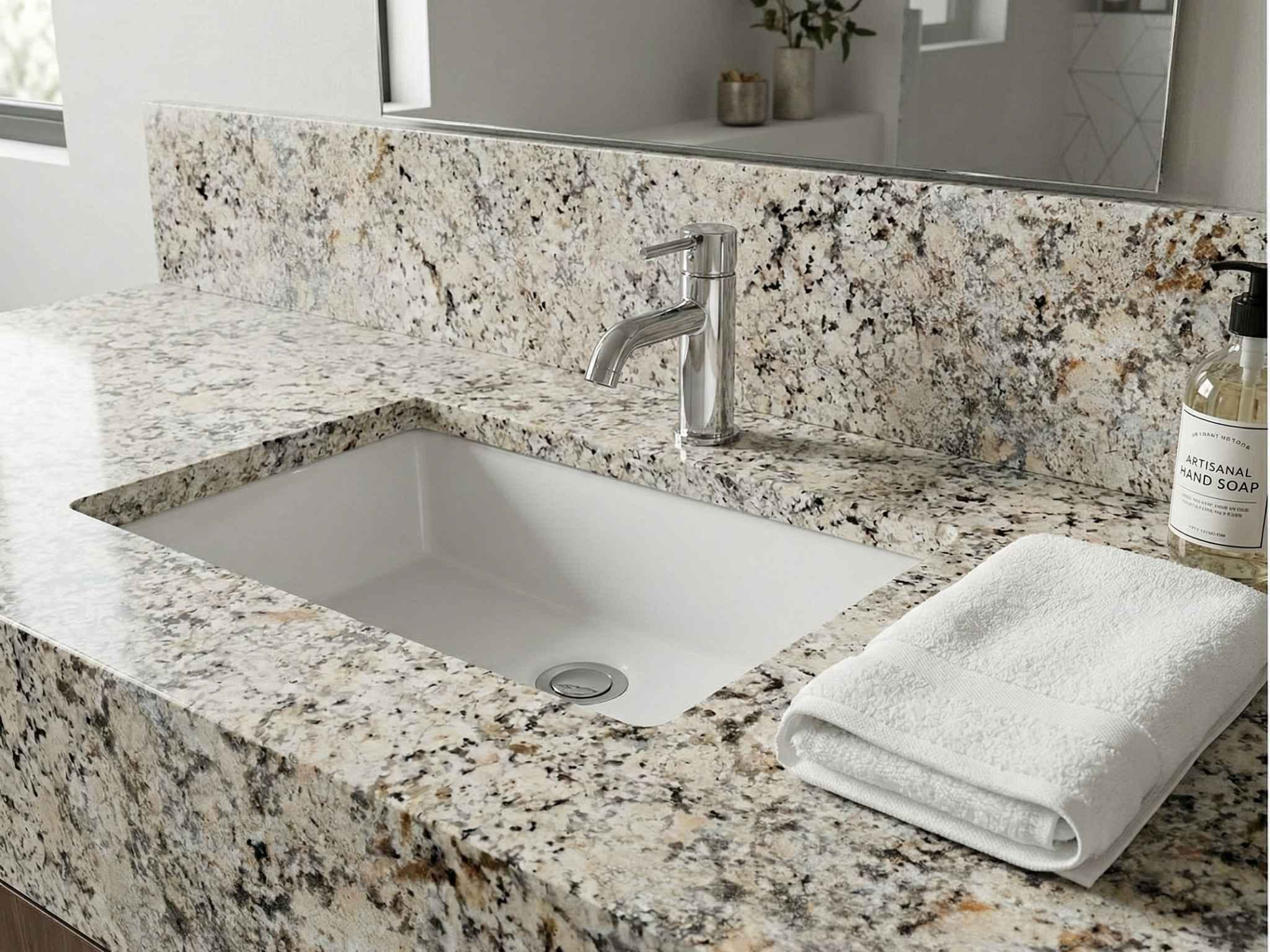 Upgrade your home with this stunning granite countertop that offers dramatic style, exceptional strength, and enduring beauty—perfect for kitchens and bathrooms that demand both performance and sophistication.